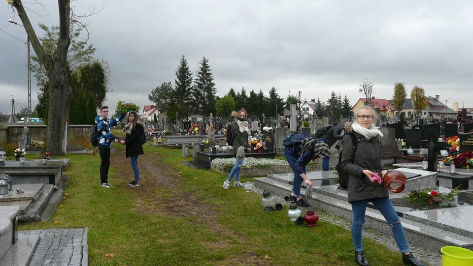 Uczniowie sprzątali groby żołnierzy