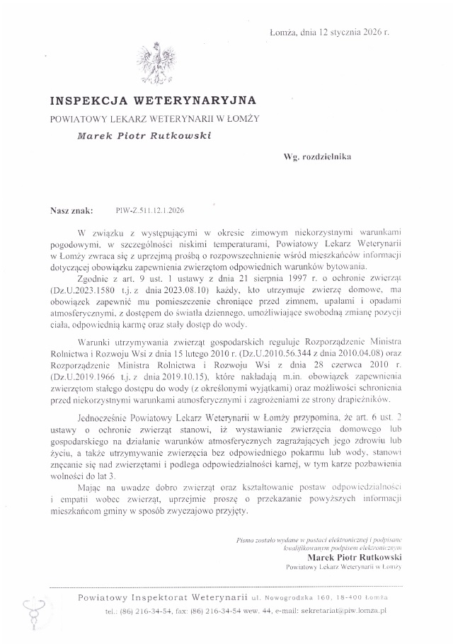 WŁAŚCICIELU! ZABEZPIECZ SWOJE ZWIERZETA PRZED MROZEM